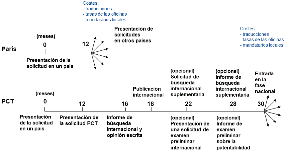 Existen dos tipos de sistemas de presentación de solicitudes de patente: vía Convenio de París, o vía Tratado de Cooperación de Materia de Patentes (PCT).